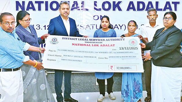 தேசிய சட்டப்பணிகள் ஆணைக்குழு மற்றும் தமிழ்நாடு மாநில சட்டப்பணிகள் ஆணைக்குழுவின் உத்தரவின் அடிப்படையில் தூத்துக்குடி மாவட்டத்தில் நேற்று தேசிய மக்கள் நீதிமன்றம் நடந்தது. மாவட்ட முதன்மை நீதிபதி மற்றும் தலைவர் ஆர். வசந்தி தலைமை தாங்கினார். சென்னை உயர் நீதிமன்ற நீதிபதி ஏ.டி. ஜெகதீஷ் சந்திரா முன்னிலை வகித்து தொடங்கி வைத்தார்.