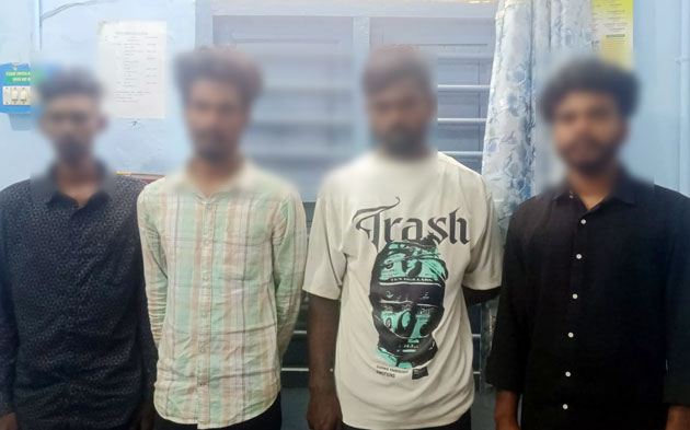 அந்த பையில் 2கிலோ கஞ்சா இருந்தது. அதை பறிமுதல் செய்த போலீசார் அவர்களிடம் விசாரணை நடத்தினர். இதில், அவர்கள் தூத்துக்குடி எஸ்.கே.எஸ்.ஆர்.காலனி மாரிச்செல்வம் (21), போல்பேட்டையை சேர்ந்த மாரிபிரபாகரன் (25), நந்தகோபாலபுரத்தை சேர்ந்த சிவா (25), அன்பு நகரைச் சேர்ந்த சிவலிங்கம் (26) ஆகியோர் எனவும், ஒடிசா மாநிலத்தில் இருந்து கஞ்சாவை கடத்தி வந்து, இப்பகுதியில் விற்பனை செய்வதாகவும் தெரிவித்தனர். இதுகுறித்து அய்யாபுரம் போலீசார் வழக்குப்பதிவு செய்து அந்த 4பேரையும் கைது செய்தனர்.