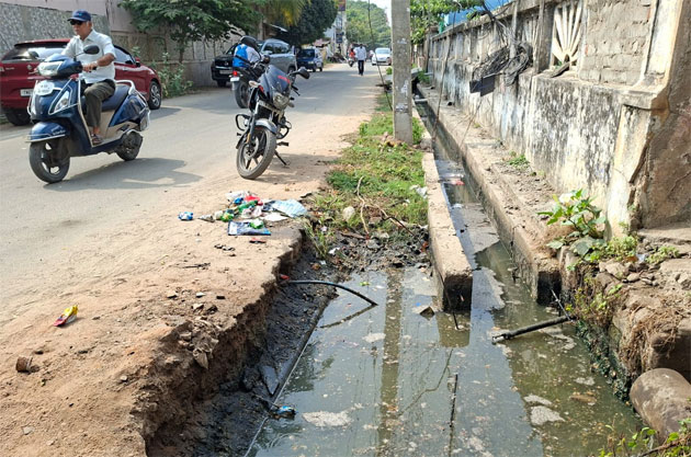 தூத்துக்குடி மாநகராட்சிக்குட்பட்ட பெருமாள்புரம் மெயின் ரோட்டில், பல ஆண்டுகளாகச் சேதமடைந்து கிடக்கும் கழிவுநீர் கால்வாயைச் சீரமைக்க அதிகாரிகள் முன்வராததால், பொதுமக்களும் மாணவ-மாணவிகளும் பெரும் அவதிக்குள்ளாகி வருகின்றனர்.