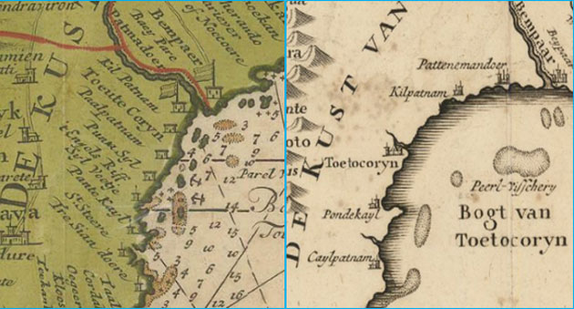 1710-1740 வான் கியூலன் / டி'ஆன்வில் - கீழ்பட்டினம் கடல்சார் வழிசெலுத்தல் (முத்து மீன்பிடித்தல்).