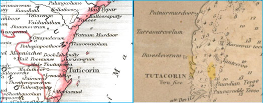 1788 ஜேம்ஸ் ரென்னெல் (1வது பதிப்பு) - கீழ்பட்டினம் / தாராவர் மாற்ற காலம்; இரண்டு பெயர்களும் அவ்வப்போது குறிப்பிடப்படுகின்றன.