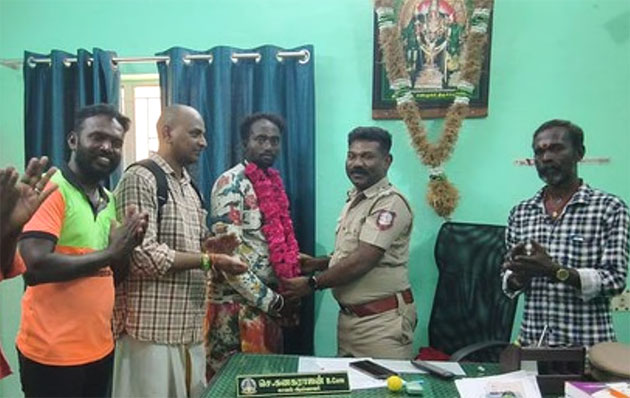 தகவல் அறிந்து திருச்செந்தூர் வந்த மணிகண்டனிடம், கோயில் காவல் நிலைய ஆய்வாளர் கனகராஜன் முன்னிலையில் அவரது தங்கச் சங்கிலி முறைப்படி ஒப்படைக்கப்பட்டது. தங்கச் சங்கிலியை நேர்மையுடன் மீட்டுக் கொடுத்த தொழிலாளி மனோவுக்கு, ஆய்வாளர் கனகராஜன் மாலை அணிவித்துத் தனது பாராட்டுகளைத் தெரிவித்தார். மேலும், தேடுதல் பணியில் துரிதமாகச் செயல்பட்ட கடலோரப் பாதுகாப்புக் குழுவினருக்கும் வாழ்த்துகள் தெரிவிக்கப்பட்டது.