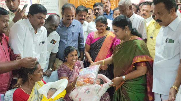 முதல்வர் பிறந்தநாள் விழா: 14 குழந்தைகளுக்குத் தங்க மோதிரம் வழங்கிய அமைச்சர் கீதா ஜீவன்!