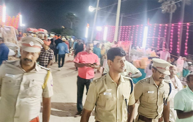 கடற்கரைப் பகுதியில் புனித நீராடும் பக்தர்கள் மற்றும் பொதுமக்களின் பாதுகாப்பைக் கருதி, சீருடை மற்றும் சாதாரண உடையில் ஆண் மற்றும் பெண் காவலர்கள் தொடர் கண்காணிப்பில் ஈடுபட்டுள்ளனர். விழா ஏற்பாடுகள் மற்றும் பாதுகாப்புப் பணிகளை ஆய்வு செய்ய, மாவட்ட காவல் கண்காணிப்பாளர் நேற்று (03.03.2026) மாலை நேரில் வருகை தந்தார்.
