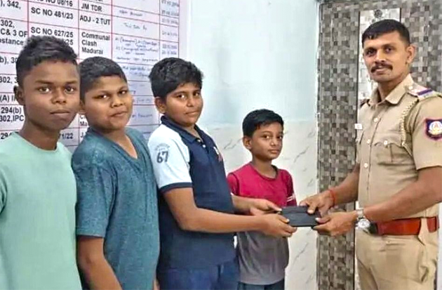 தூத்துக்குடி மாவட்டம், ஆத்தூர் சோமநாதர் கோயில் தேர் அருகே, நேற்று சுமார் ரூ. 3,600 ரொக்கப் பணம் இருந்த கருப்பு நிற மணி பர்ஸ் ஒன்று கீழே விழுந்து கிடந்துள்ளது. அவ்வழியாகச் சென்ற முகமது இர்பான் (14), அமர்ஜெர்ரி (12), பிரஜித் (14) மற்றும் திலீப்குமார் (14) ஆகிய நான்கு சிறுவர்கள் அந்தப் பையை எடுத்துள்ளனர்.