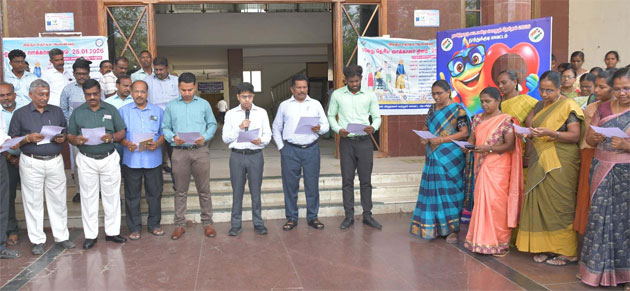 இந்த நிலையில், தூத்துக்குடி மாவட்ட ஆட்சியர் அலுவலகத்தில் நடைபெற்ற நிகழ்ச்சியில், ஆட்சியர் விஷு மகாஜன் உறுதிமொழியை வாசிக்க, அலுவலர்கள் அதனைத் திரும்பக் கூறி ஏற்றுக்கொண்டனர். இந்நிகழ்வில் மாவட்ட வருவாய் அலுவலர் குருச்சந்திரன், மாவட்ட ஆட்சியரின் நேர்முக உதவியாளர் (பொது) கல்யாணசுந்தரம், மாவட்ட ஆதிதிராவிடர் நல அலுவலர் பென்னட் ஆசீர் மற்றும் பல்வேறு அரசுத் துறைச் சார்ந்த அலுவலர்கள் கலந்துகொண்டனர்.