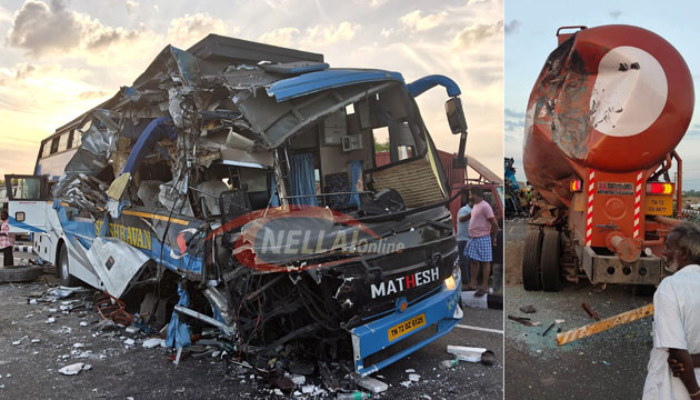 சிமெண்ட் கலவை டேங்க் லாரியின் பிரேக் பிடிக்கும் பகுதி பழுது ஏற்பட்டதால் லாரியை அதன் டிரைவர் கல்லிடைக்குறிச்சியை சேர்ந்த இசக்கி என்பவர் நிறுத்தி கீழே இறங்கி பார்த்துக் கொண்டிருந்ததாகவும், தேசிய நெடுஞ்சாலையில் எவ்வித பாதுகாப்பு முன்னேற்பாடு செய்யாமல் நிறுத்தி இருந்ததாலும், அதிகாலை என்பதால் டேங்க லாரி நிறுத்தி இருப்பது தெரியாமல் அதிவேகமாக வந்த ஆம்னி பேருந்து அதன் பின்பக்கத்தில் பலமாக மோதி விபத்து ஏற்பட்டதாக போலீசாரின் முதற்கட்ட விசாரணையில் தெரியவந்துள்ளது. இதுகுறித்து போலீசார் வழக்குப் பதிந்து, டேங்கர் லாரி டிரைவர் கல்லிடைக்குறிச்சி இசக்கி என்பவரிடம் விசாரணை நடத்தி வருகின்றனர்.