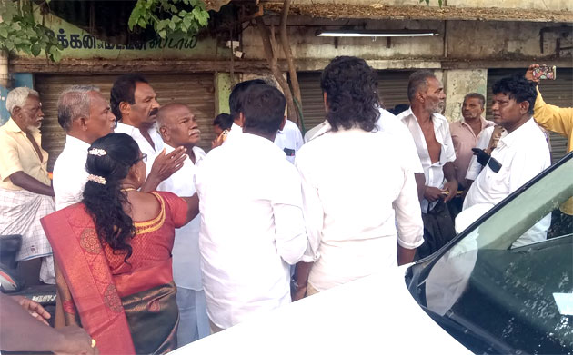 அப்போது, அந்த வழியாக தமிழக வெற்றிக் கழகத்தின் தூத்துக்குடி தொகுதி வேட்பாளர் நடிகர் ஸ்ரீநாத், மத்திய மாவட்ட செயலாளர் எஸ்டிஆர் சாமுவேல்ராஜ், கிஷோர் மற்றும் கோல்டன் ஆகியோர் மூன்று கார்களில் வந்துள்ளனர். அங்கு பழ வியாபாரம் செய்து கொண்டிருந்த ஒருவரிடம், தவெக வேட்பாளர் மற்றும் தொண்டர்கள் விசாரணை நடத்தினர். "பழம் விற்பது போல் வாக்காளர்களுக்குப் பணம் கொடுக்கிறாயா?" என்று கேட்டு, அவரிடமிருந்த பணத்தைப் பறிக்க முயன்றதாகத் தெரிகிறது.